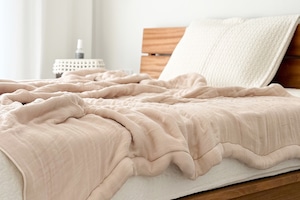 太い番手の糸をざっくり甘撚りに織った生地を使用。多層に重ねることで空気をたっぷり含みふわふわに。かさ高だからあたたかくオールシーズン便利に使えます。