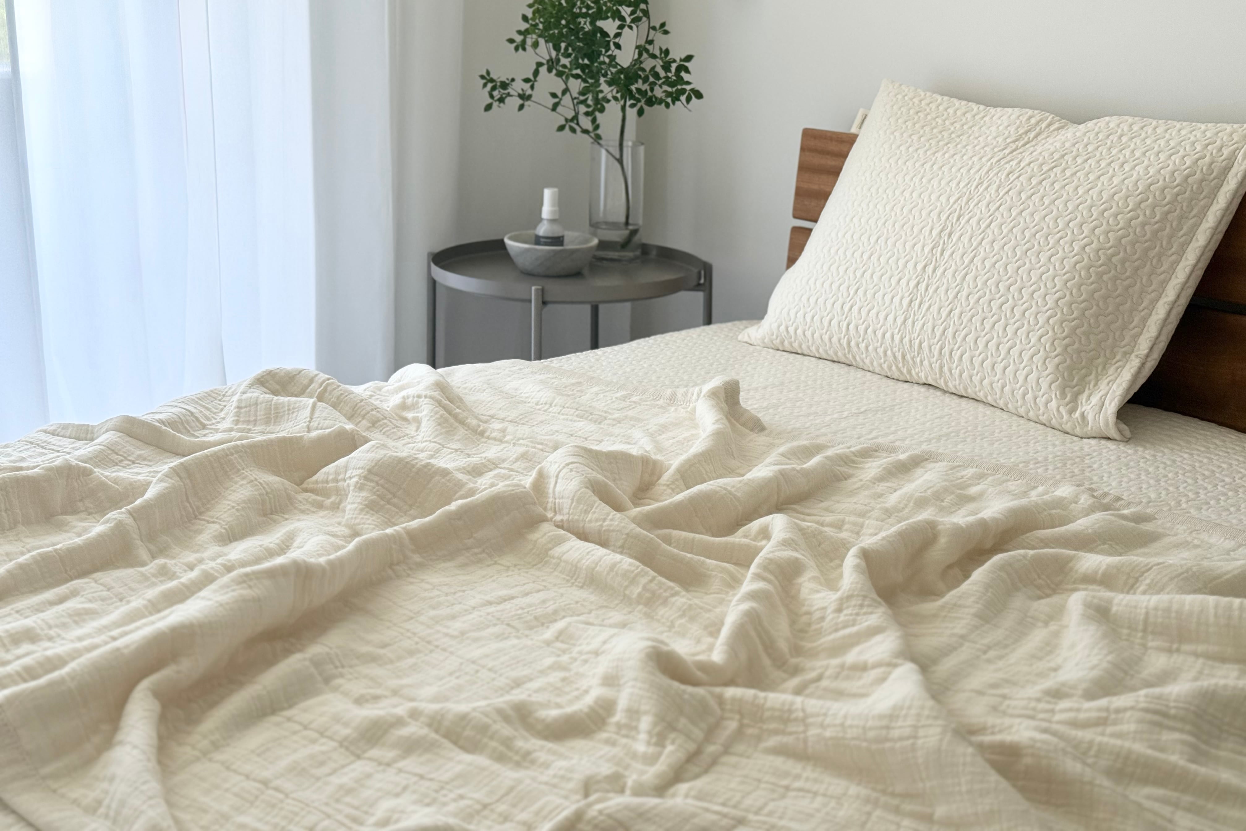 2025年の夏も厳しい暑さが予想される中、ココマニでは夏の快適な睡眠をサポートする“涼感”をお届けするため、大人気のtorosara 5重ジャガード織 ガーゼケットが限定カラーの対象となりました♪