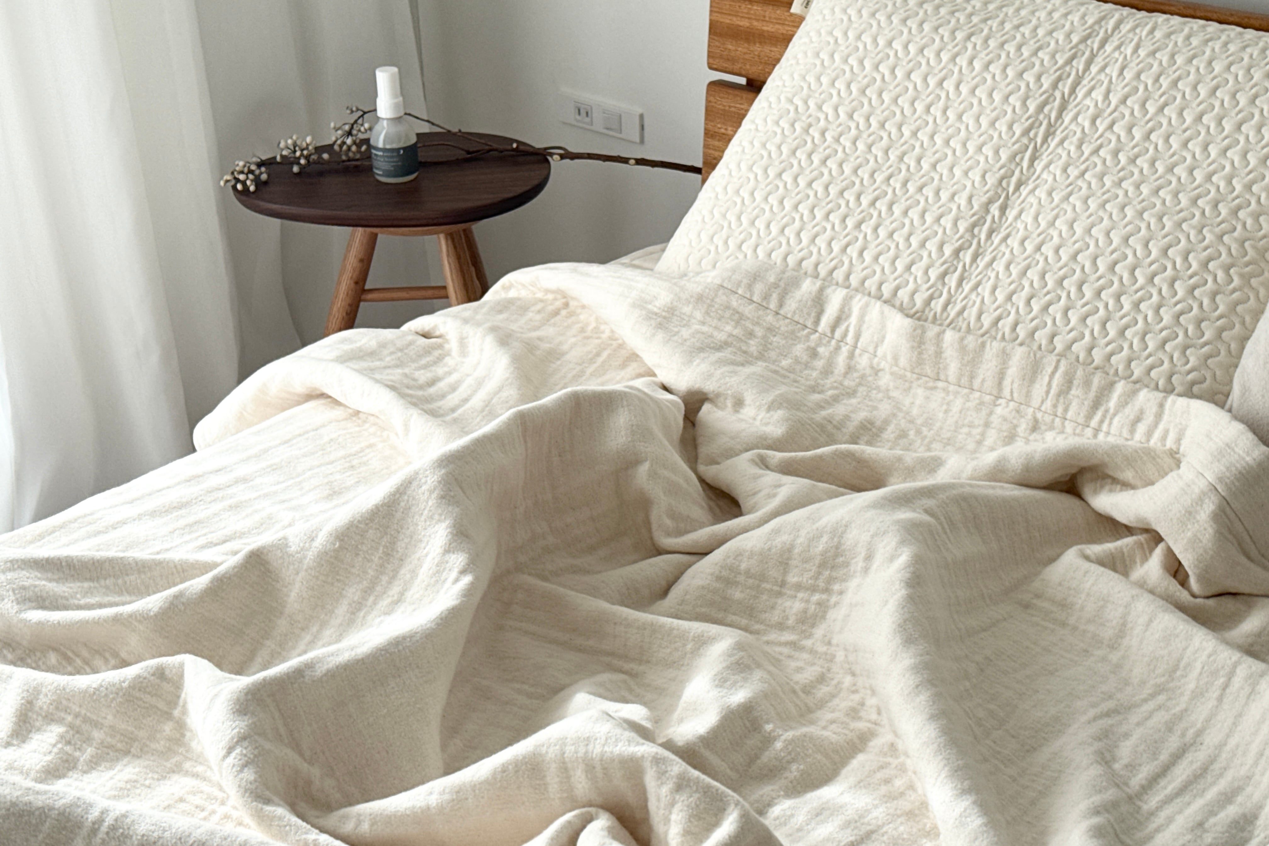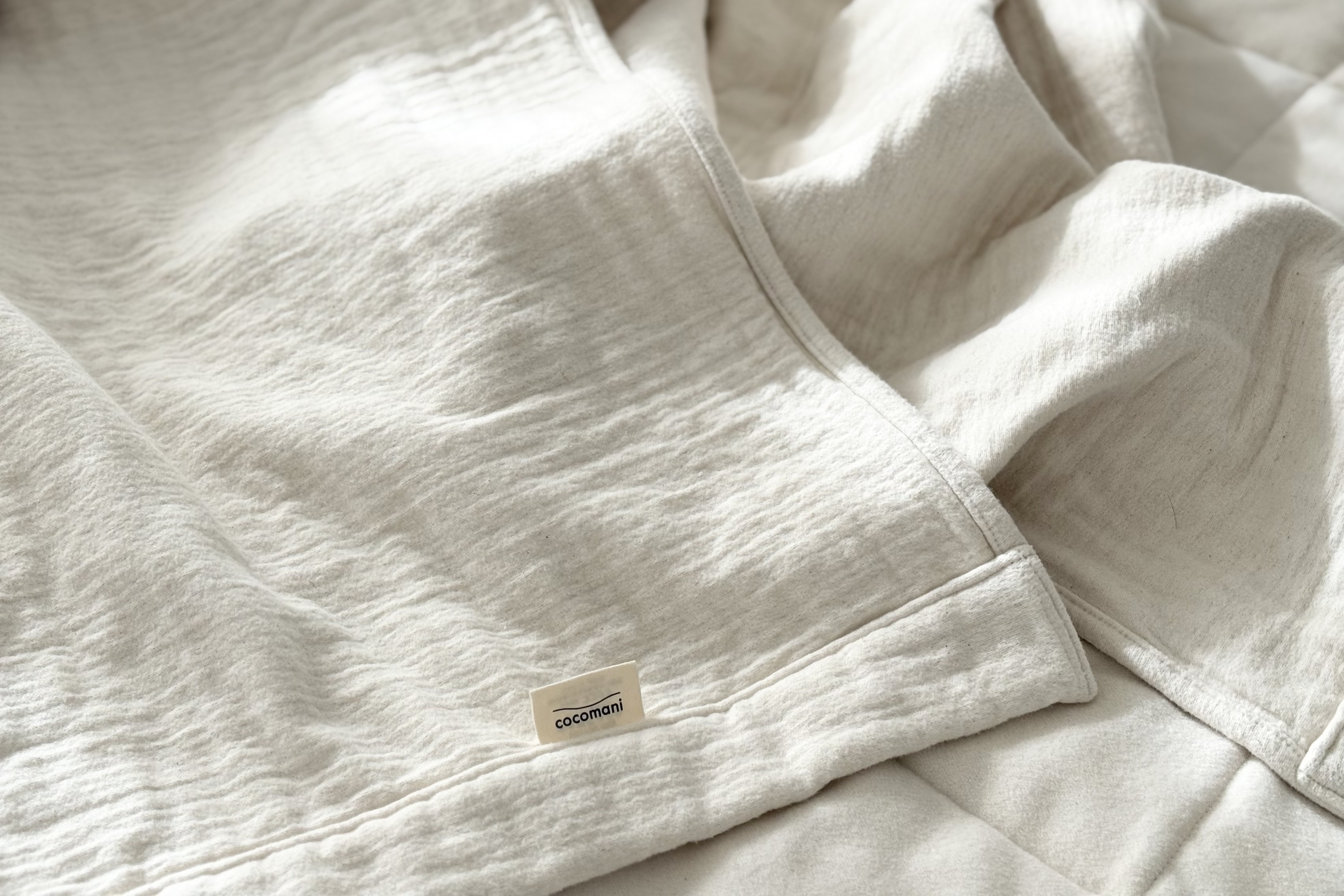 ガーゼの通気性と軽さ。毛布のあたたかさとやさしい肌触り。