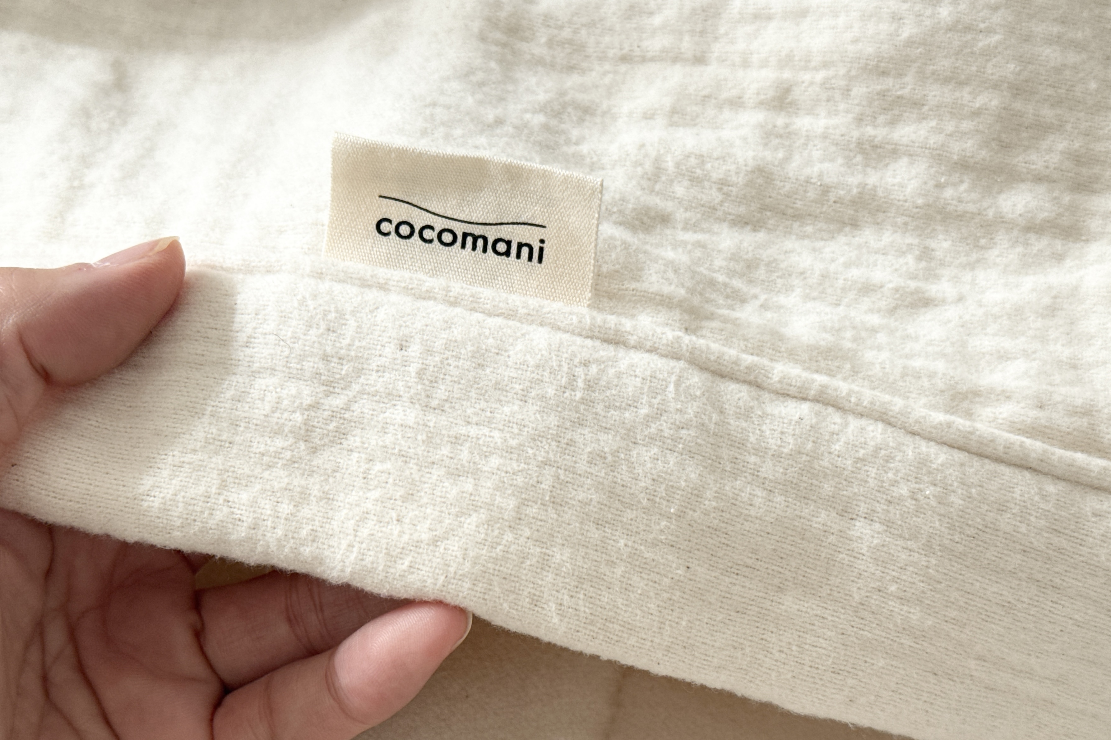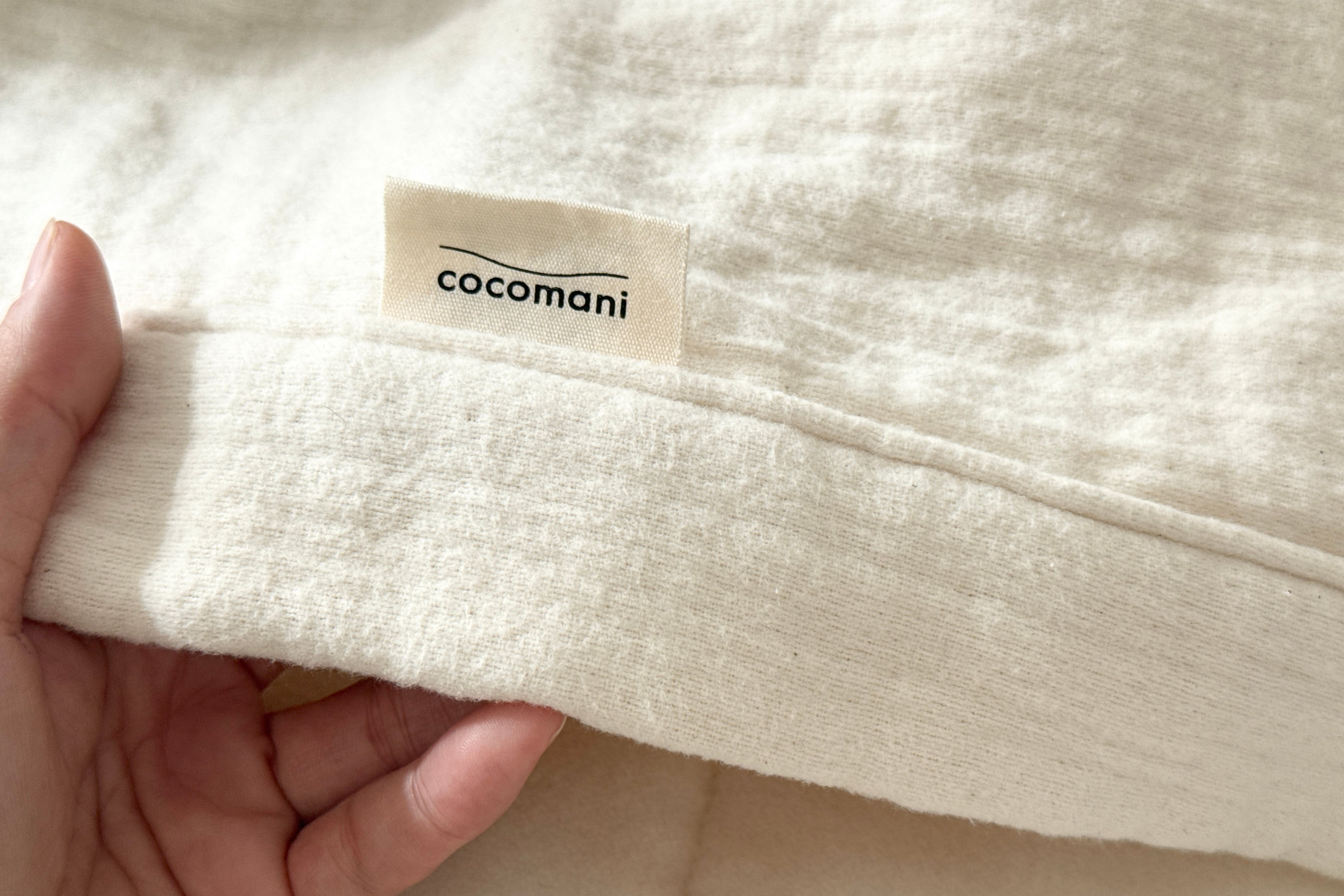 綿カスは特にキナリ色の製品の表面や、洗濯直後の製品の表面・中綿でよく見られます。