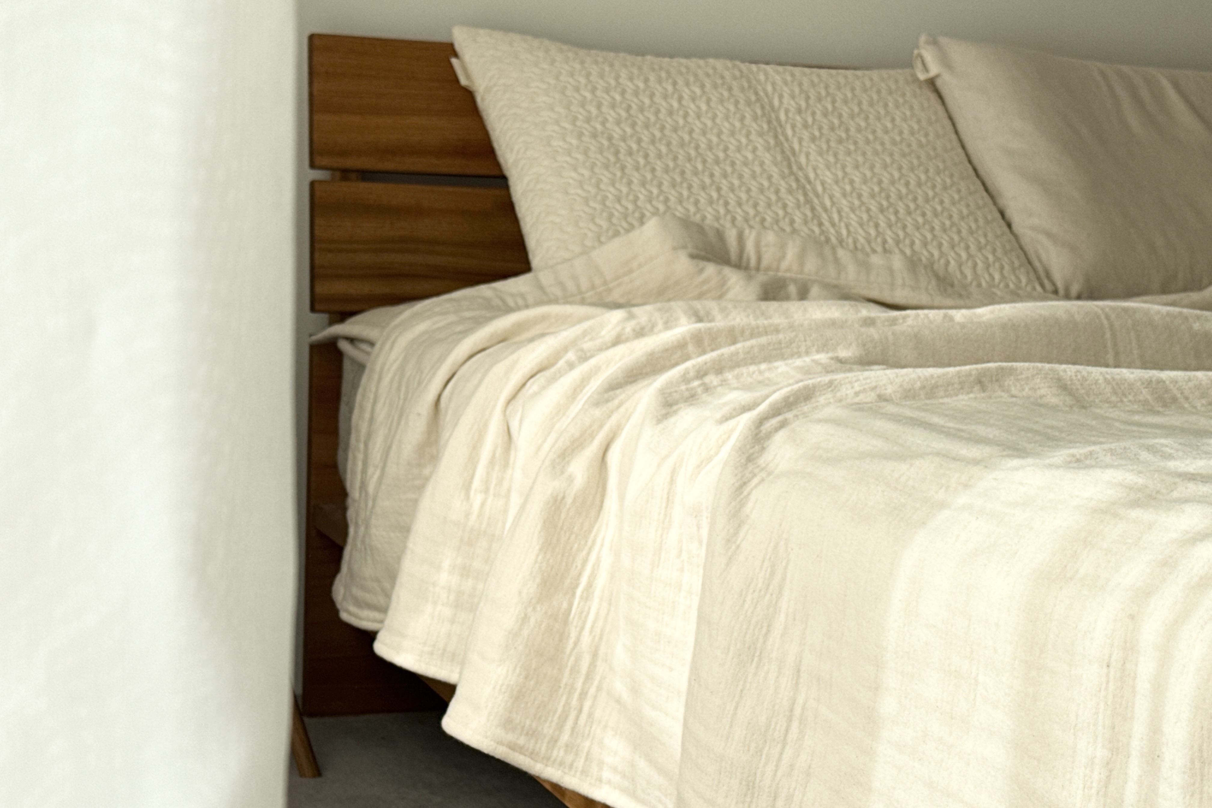 インテリアコーディネーターとタッグを組んで開発したブランケットは、柔らかな肌触りと上品な色使いで、寝室を優雅な空間に演出します。