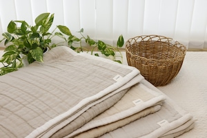 太い番手の糸をざっくり甘撚りに織ったガーゼ生地を使用。6枚重ねることで空気をたっぷり含みふわふわに。通常のガーゼより、かさ高だからオールシーズン便利に使えます。