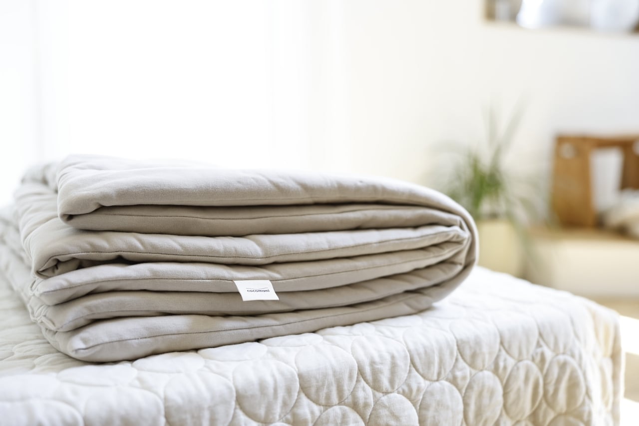 通常、中綿にはポリエステルなどの化学繊維を採用することが多い中、cocomaniでは中綿にまでオーガニックコットンを採用しています。だから敏感肌にお悩みの皆さまのストレスを軽減するやさしいお布団となっています。