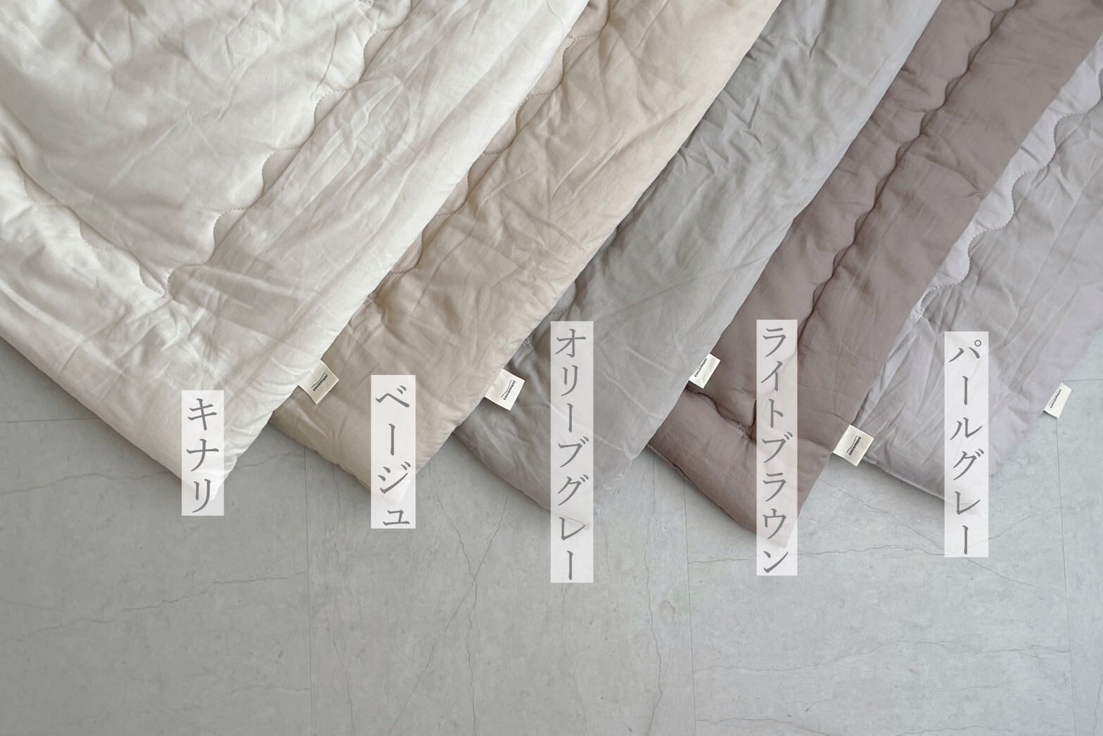 合い掛け布団の表裏の側生地には素材の風合いを最大限に引き立てる“ココマニオリジナルガーゼ”が採用されています。