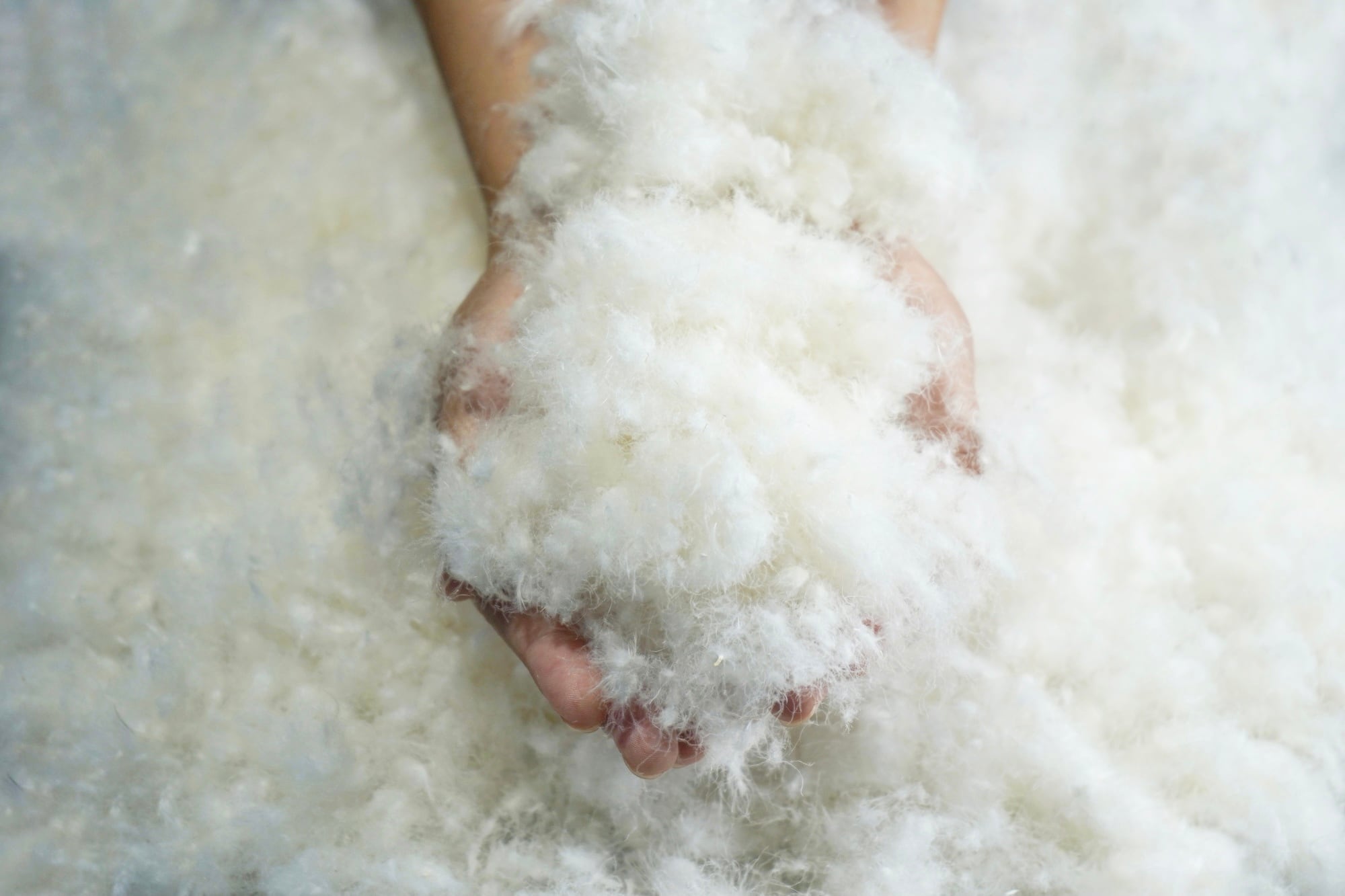 海外で収穫された羽毛は洗浄・乾燥工程を経て入荷します。しかし海外で洗浄した場合、その洗浄技術や水の成分レベルではJIS基準をクリアできていないケースがあります。そこでココマニでは国内でもう一度除塵・洗浄・乾燥を経てクリーンでふっくらな羽毛へ仕上げています。