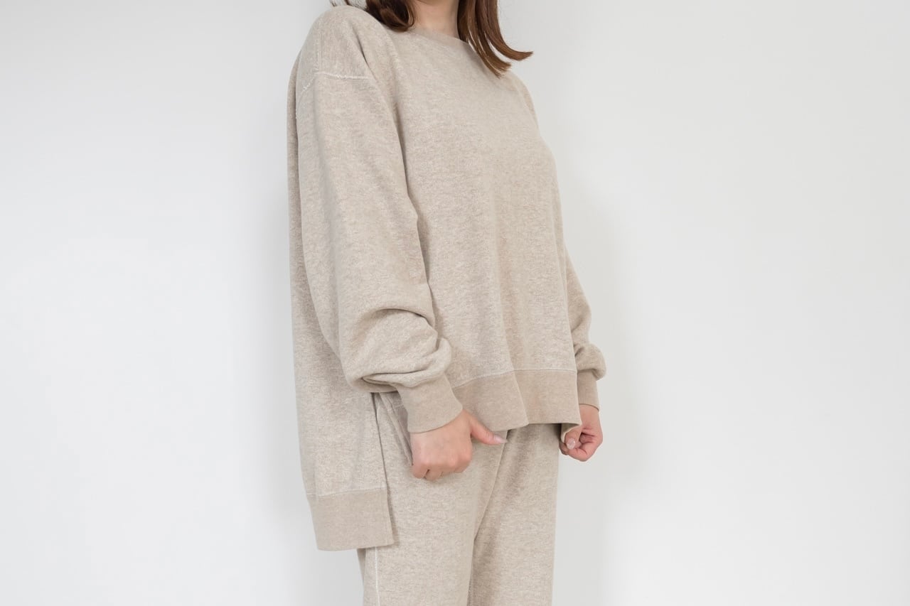 じっくりゆっくりと編まれる吊裏毛製法は、まるで手編みのような生地に仕立てられます。
