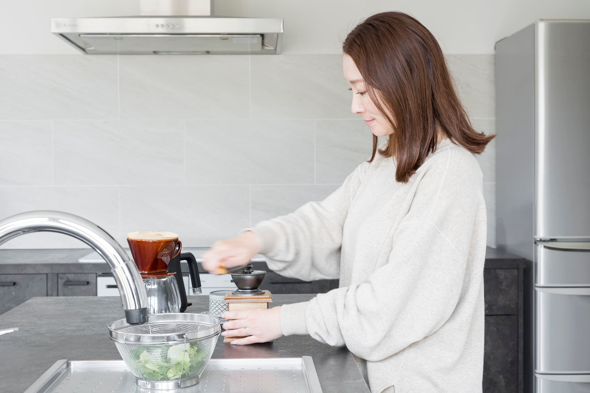 糸に余計な負荷をかけずに織る吊裏毛生地は、ふっくらとした風合いでいながらも強度に優れています。お洗濯を繰り返しても型崩れしにくく、着こむほどに体と暮らしに馴染んでいきます。