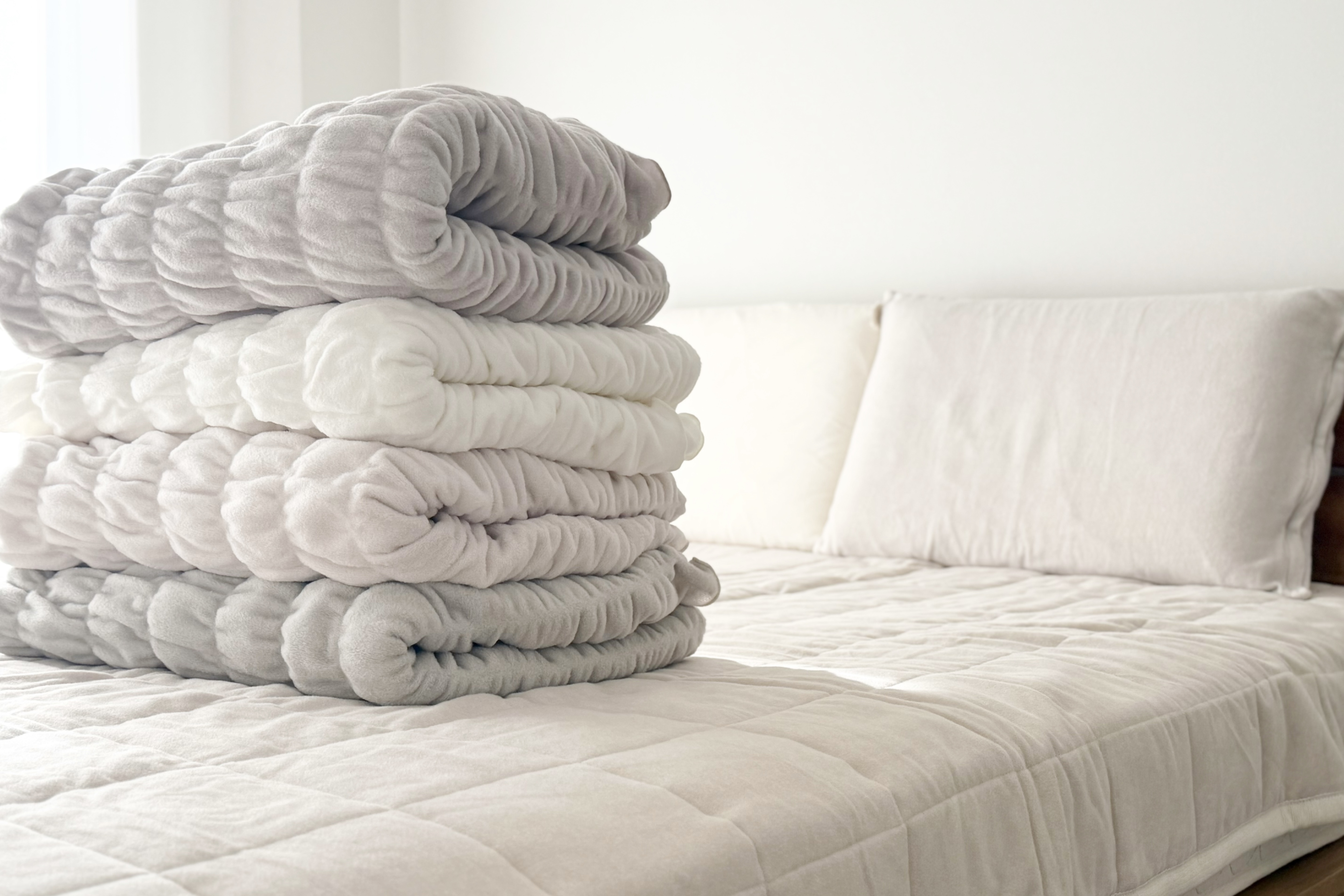 特に室温を低く設定している場合に、肌寒いと感じる方には保温性に優れた綿毛布がおすすめです。